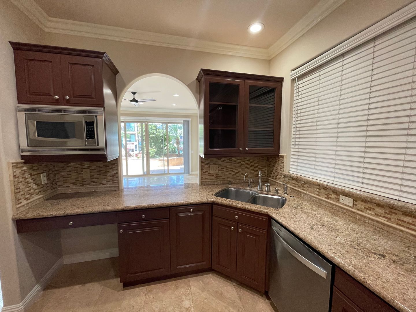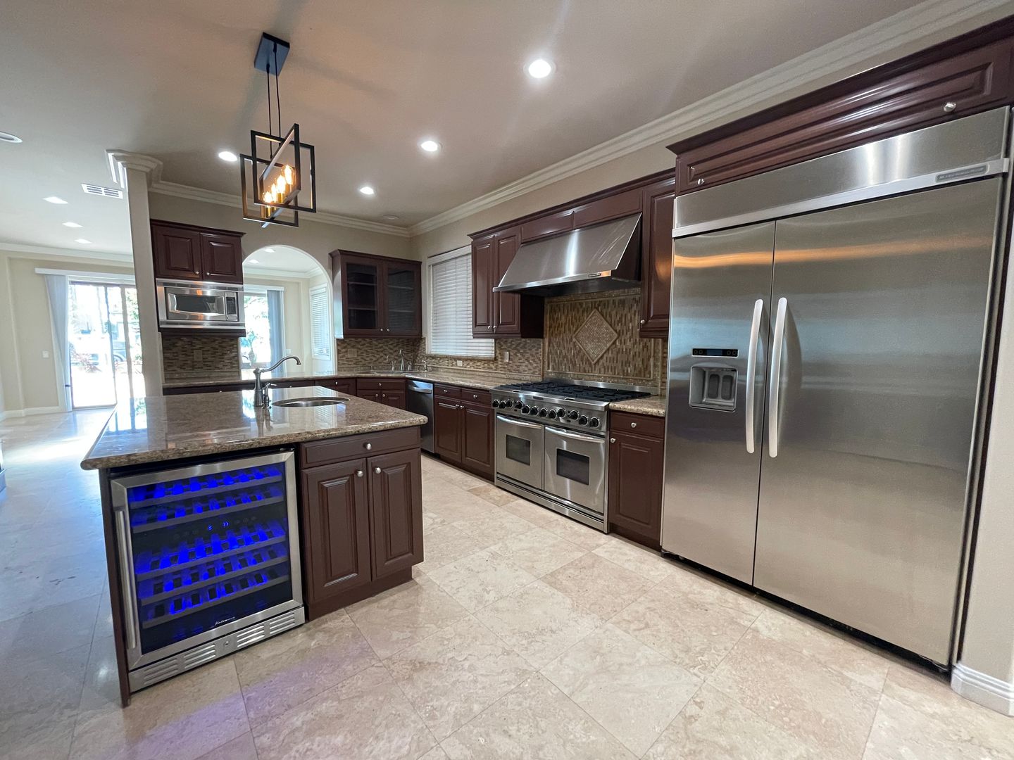 This 3-bedroom custom built home has upgraded stainless steel appliances including refrigerator, wine refrigerator, dishwasher, granite kitchen counter tops and large pantry.
