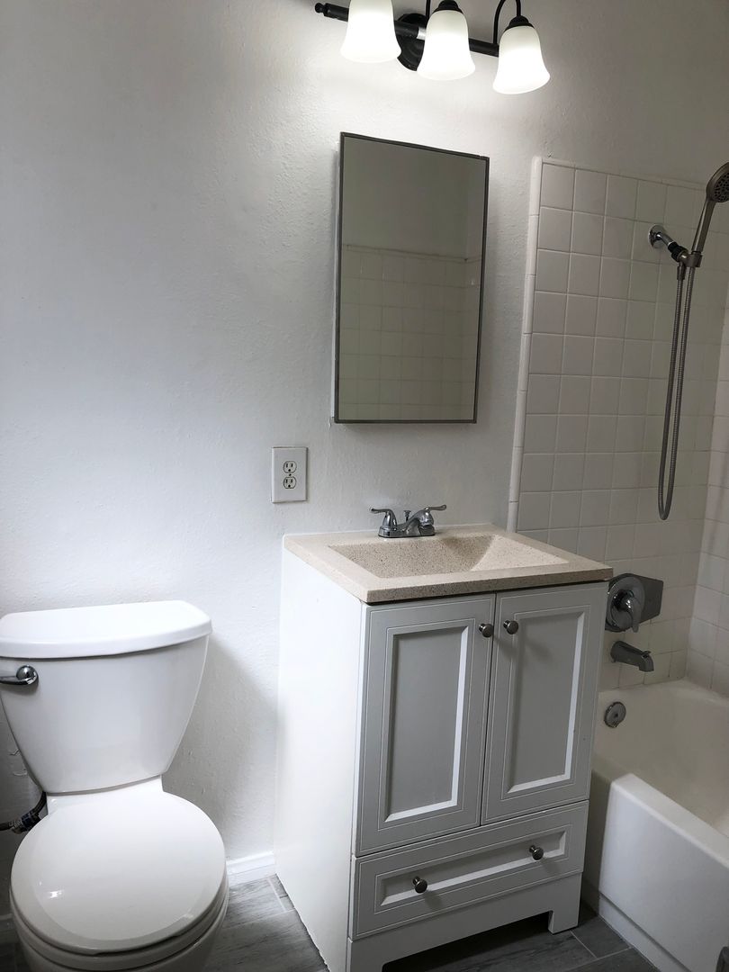 Bathroom has a newer vanity.
